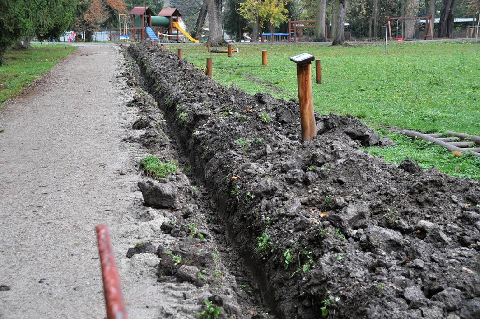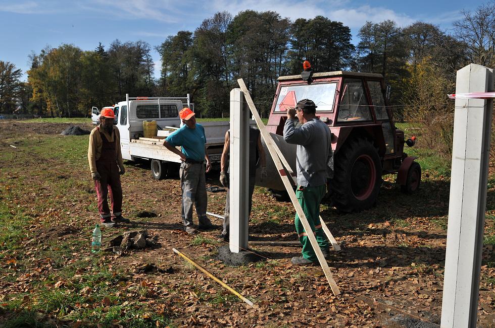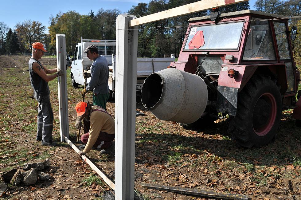 Stavba plota v parku